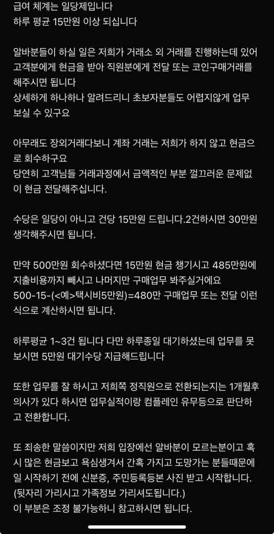 보이스피싱 수거책 모집닐 가능성이 있을까요?