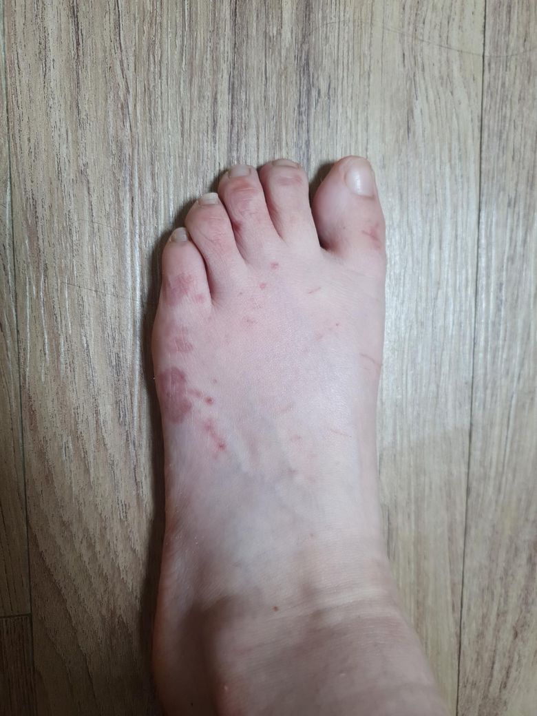 이게 왜 이런걸까요? 저 빨갛게 퍼진게 그렇다고 아프거나 가렵진않아요 오른발은 별로안그러는데 왼발이 심한거같아요 왜 이런 붉은반점이 생긴걸까요?