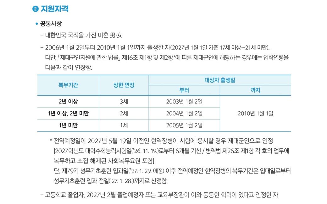 따라서 제가 생각해본게 제대군인 지원법률에 따른 입학연령 연장을 이용하는 것입니다.