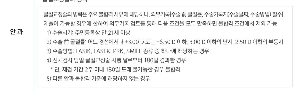 그러나 제가 현재 시력이 안좋아 시력기준에 통과할 확률이 적어보입니다.