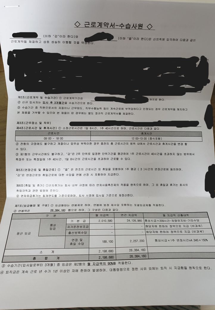 근로계약서가 불합리한지 수당을 맞게 받는건지 궁금합니다.