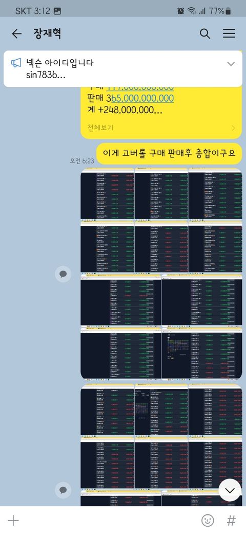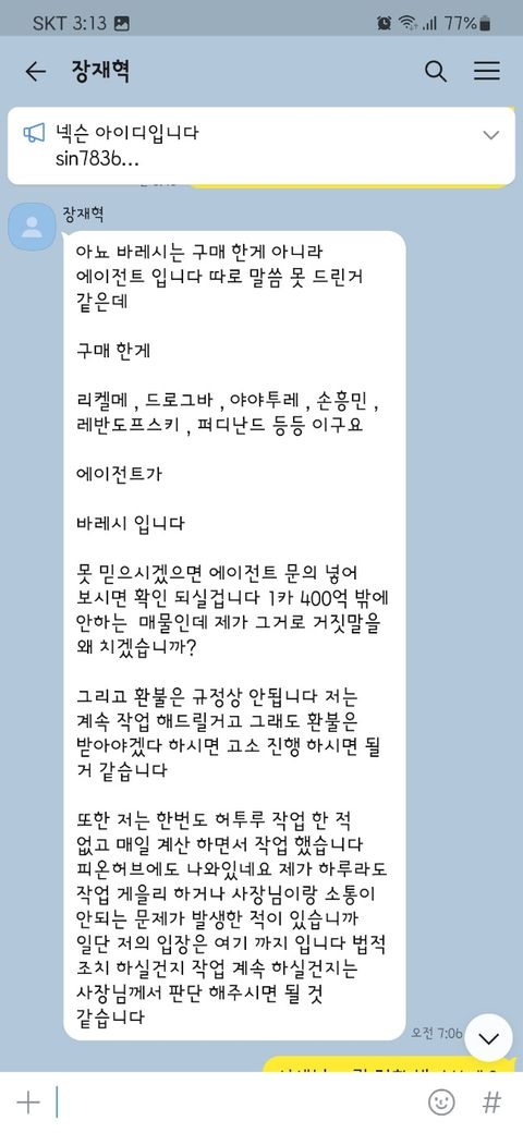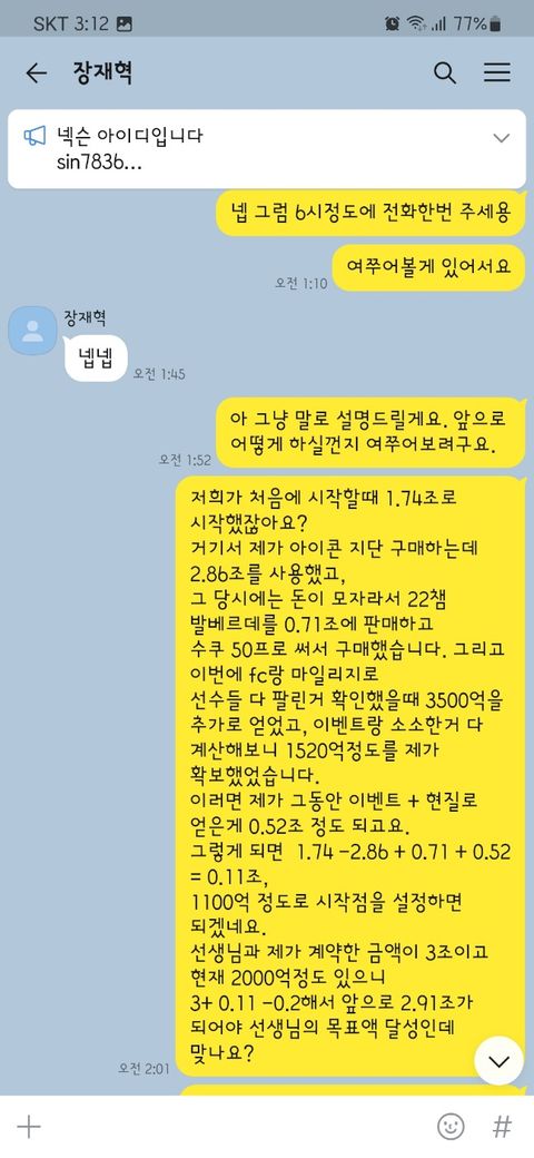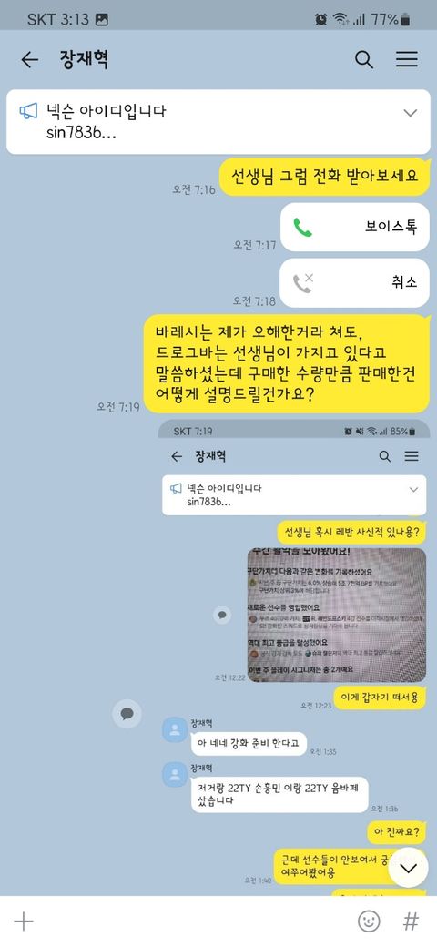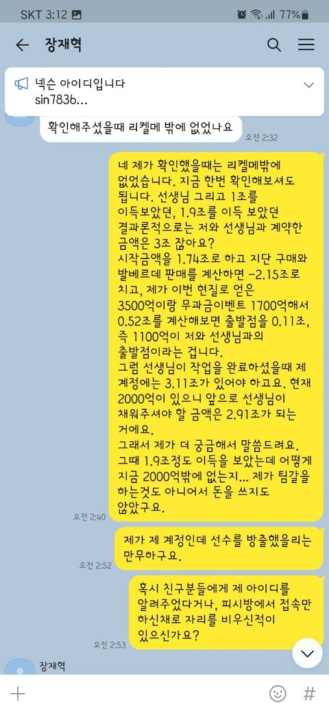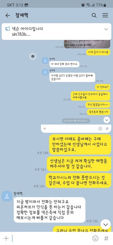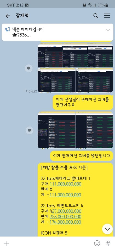 카톡 내역과 선수들의 구매, 판매내역은 캡쳐를 해놓은 상황입니다.