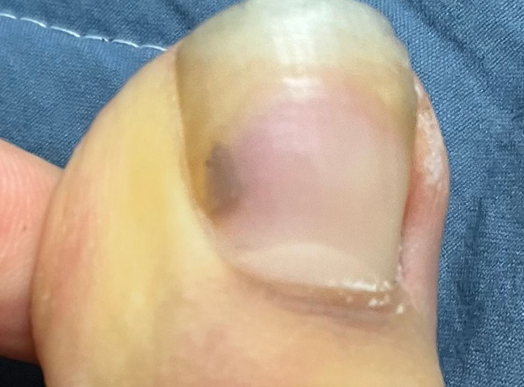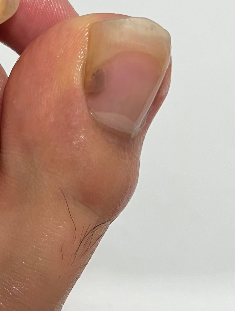 발톱에 검은색인듯 갈색인득 ㅁ무언가가 있는데 아프지은 않고 그냥 오늘 발견을 했는데 이게 피멍일지 뭘지 궁금해서 물어봅니다…..