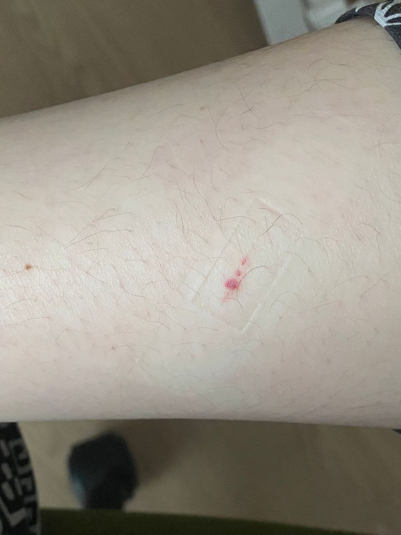 어제 고양이 카페 갔다가 고양이들끼리 장난치다 앉아있던 제 종아리를 실수로 긁고 가버렸어요.. 긁히자마자 후시딘 바르고 밴드 붙이고 집와서 물로 씻고 마데커솔 바르고 하루 지난 모습인데 병원 안가도 되겠죠..? 처음에 피가 좀 나긴 했어요..