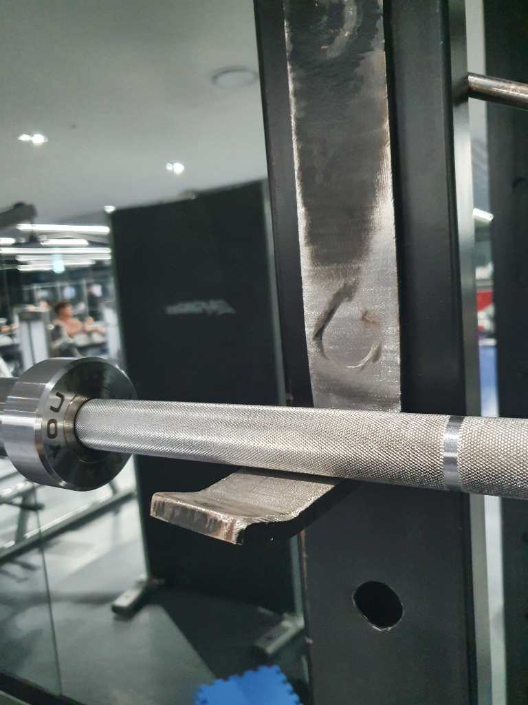 실수로 잘못 댔는지 바벨 받쳐주는 J컵(?)이 휘어서