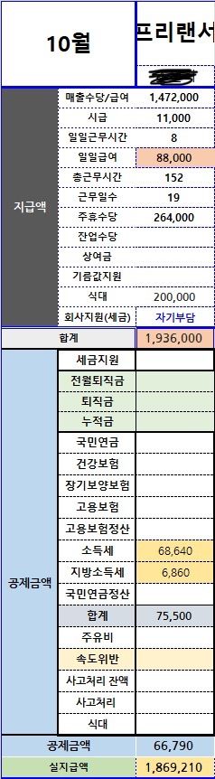 빨리 사장님께 말씀드려야 하는데 10월 11월 월급 계산 좀 도와주세요ㅠ