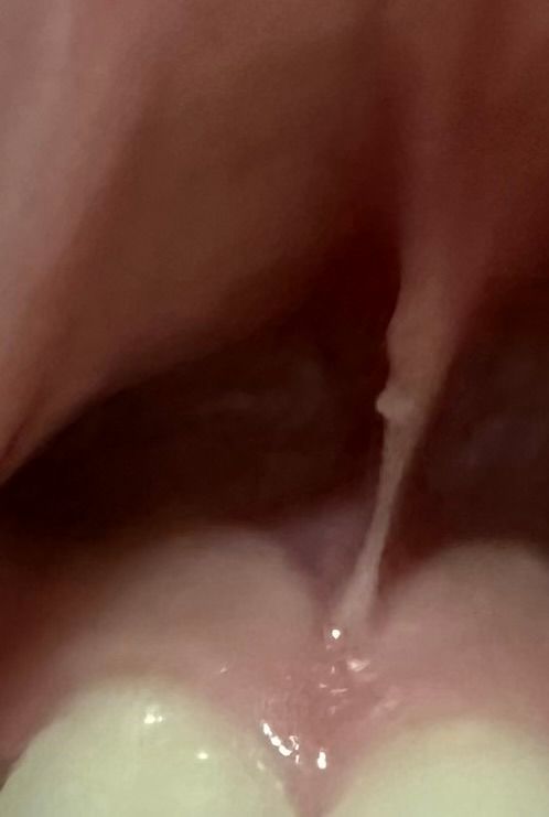 윗입술을 들추면 가운데에 작은 알갱이(?) 하얀색이 있는데