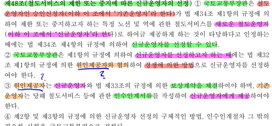 철도산업발전법 시행령 제48조 해석에 관해서