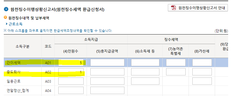 중도 퇴사자 원천세 부과 문의(국세청 신고)