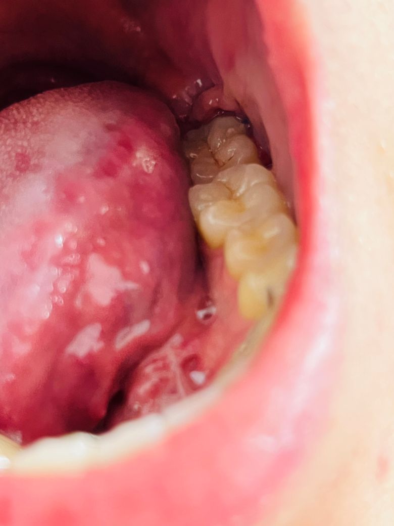 특별히 사진 상 치유지연되거나 하는 양상은 안보입니다만 볼과 주변 잇몸을 씹어서 약간 부어있긴 합니다. 해당 부위를 피해서 음식 드시기 바랍니다.