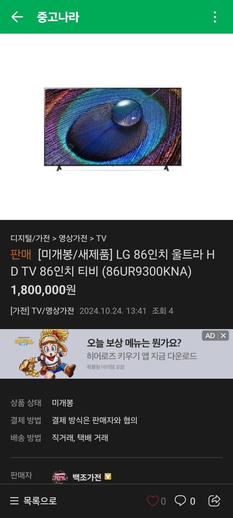 중고나라에서 미개봉티비를 구입할려고 합니다