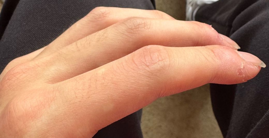 손가락은 움직임이 많은 부위로 관찰된 주름은 정상적 소견입니다.
