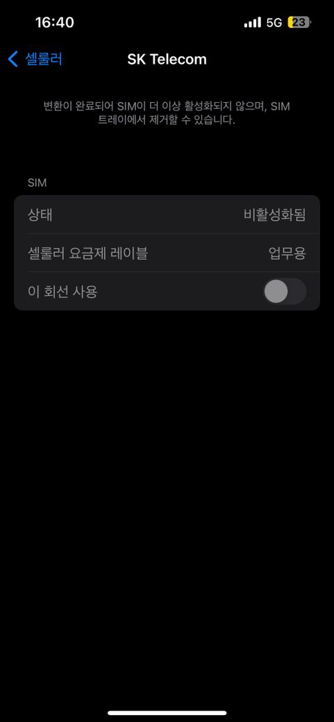 eSIM 삭제: 아이폰 설정에서 eSIM을 삭제하고 유심으로 변경 시도.