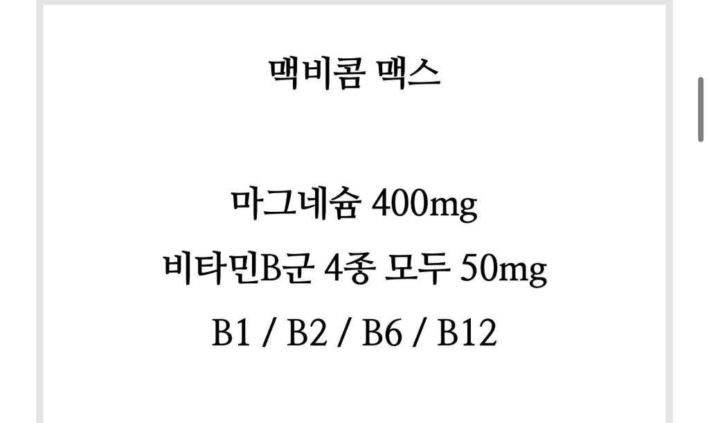 비맥스 골드에는 마그네슘 100mg를 함유하고 있고 맥비콤 맥스에는 마그네슘 400mg로