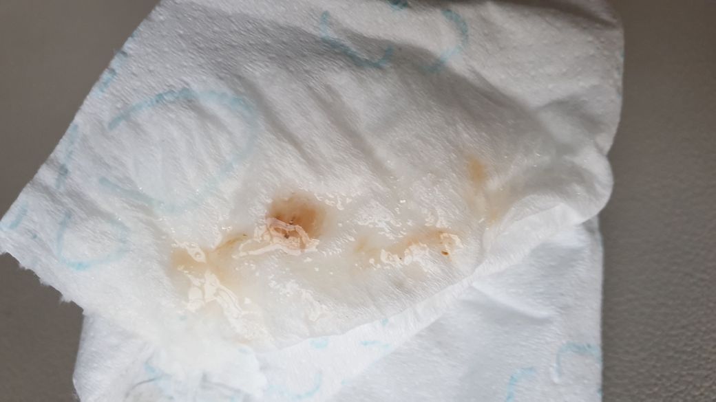 가래색은 쭉 흰색 점성있는 가래였는데 가래가 지속되어 어제 상비약 진해거담제를 먹었고 아침 첫 가래를 뱉었는데 색이 저렇네요