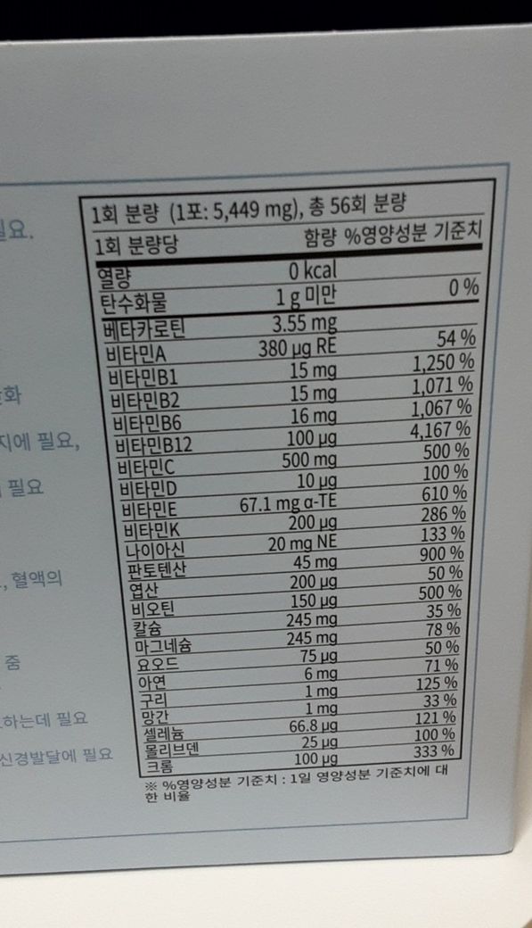 아래 사진은 종합비타민 성분입니다.