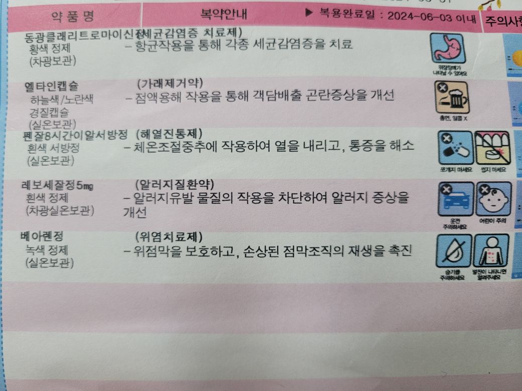 통증, 발열이 심한 경우는 같이 복용할 수 있지만 가급적 분리해서 드세요.