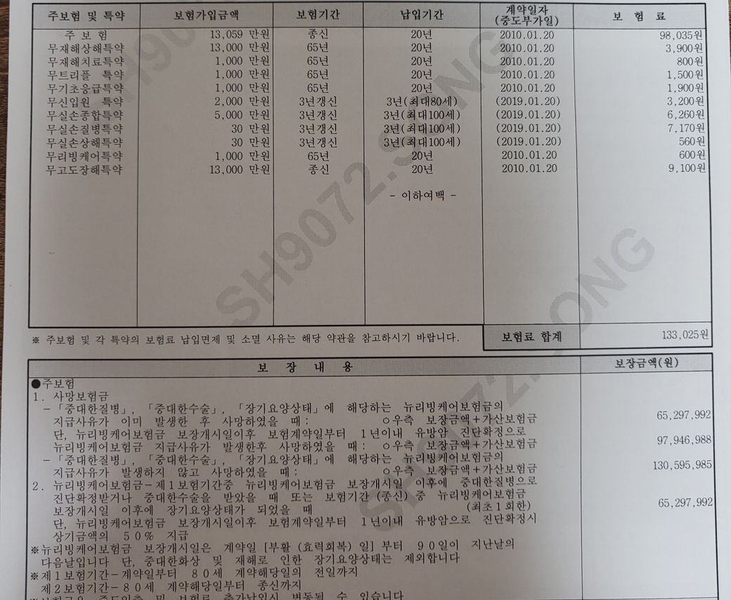 2010년 1월에 상기 보험을 저희 부모님이 가입해 주셨고 몇 년 전부터 제가 부담하고 있습니다.