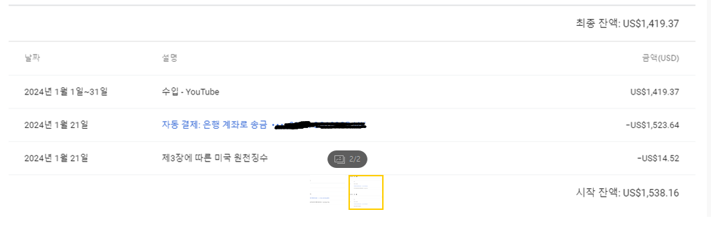 시작잔액인 외화달러 1,538.16 일까요 아니면 수입-youtube 1,419.37 일까요?