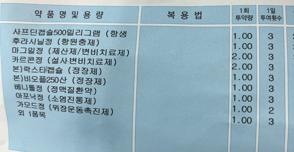 마지막에 외 1종 복용이라고 적혀있는데 1종이 어떤 약인지도 알려주시길바래요.