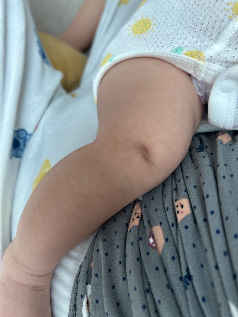 아기 무릎이 보조개처럼 들어간 것 때문에 걱정이 있으시군요.