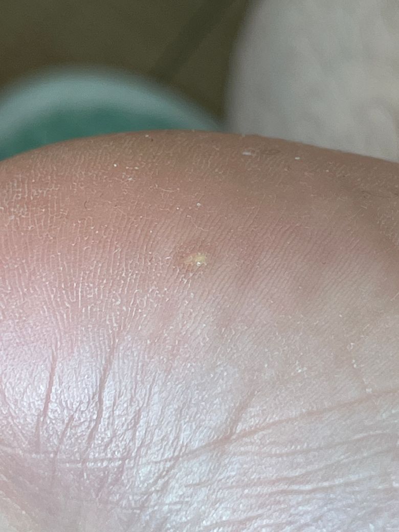 질문자님의 사진으로 추정해보면 티눈의 가능성이 있습니다. 정확한것은 가까운 피부과등에서 진료 받으시기 바랍니다.
