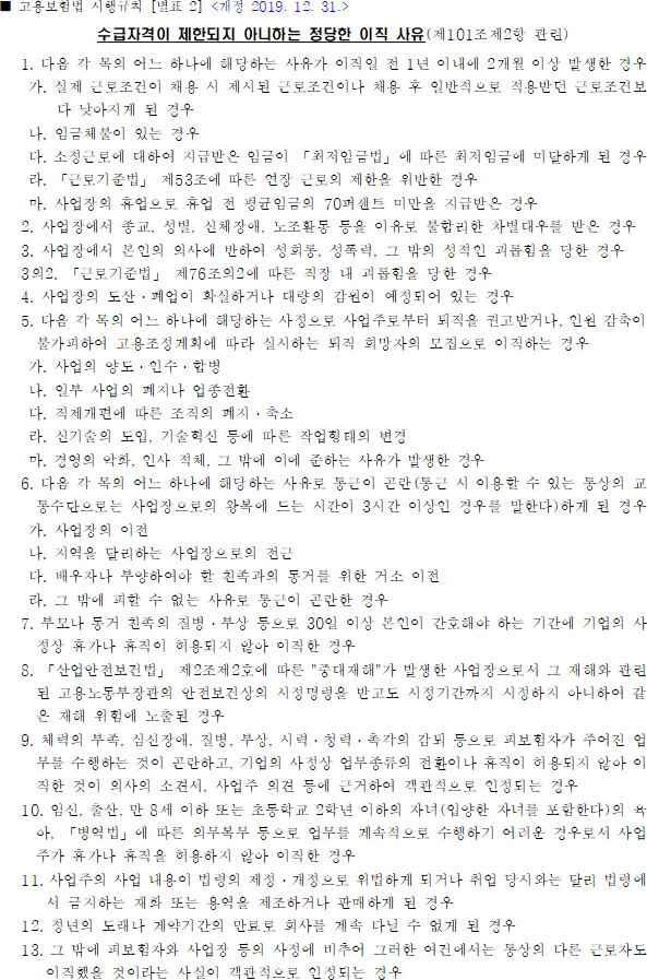 다만, 노동자가 정당한 이유로(고용보험법 시행규칙 별표2에 해당하는 사유) 퇴사한 경우에는