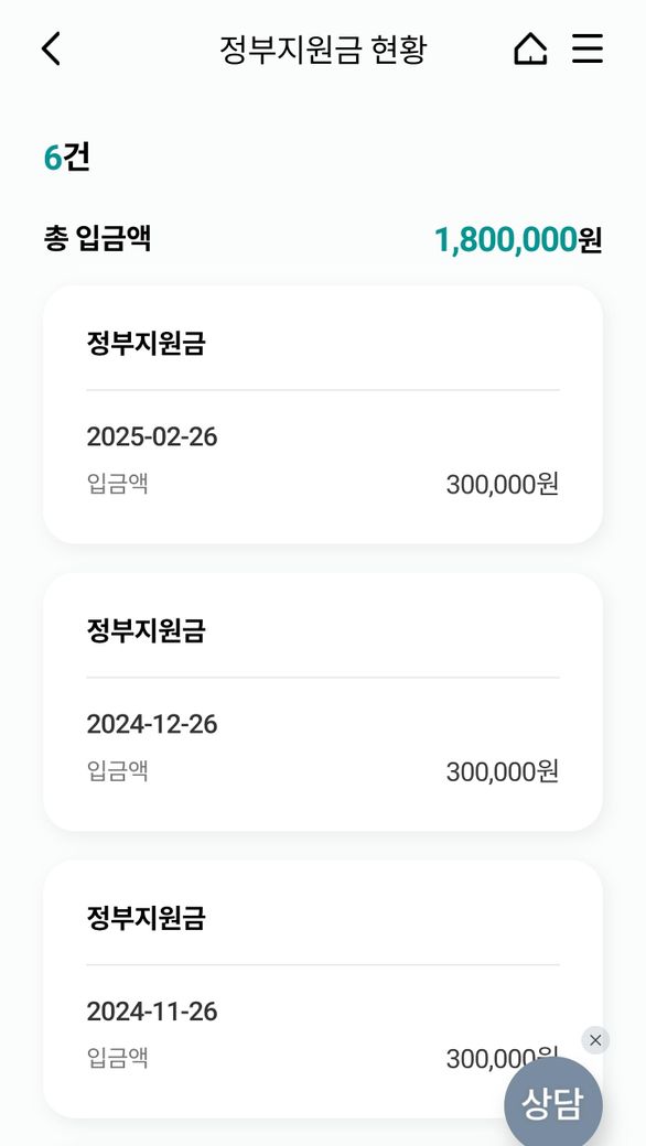 하나은행에서 조회했을땐 1월 3월분 정부지원금 입금이 누락되었는데 자산관리포털에서 조회 했을때는 1월 3월 분도 잘 입금되어 있습니다.