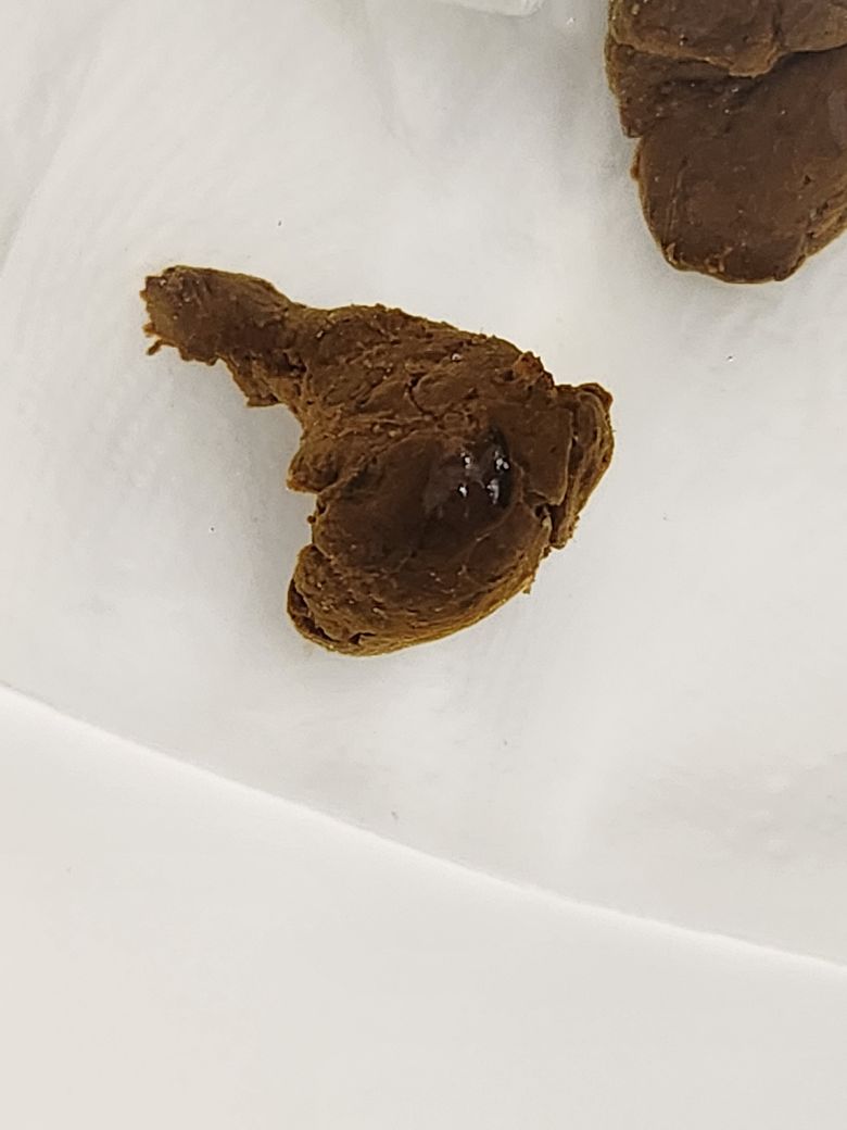 변을 봤는데 갑자기 변이 매우 검은거 같아서 사진을 찍고 보는데 변 사이에 검은색? 줄무늬 같은게 있어요 혹시 흑변인지 확인해줄수 있나요?