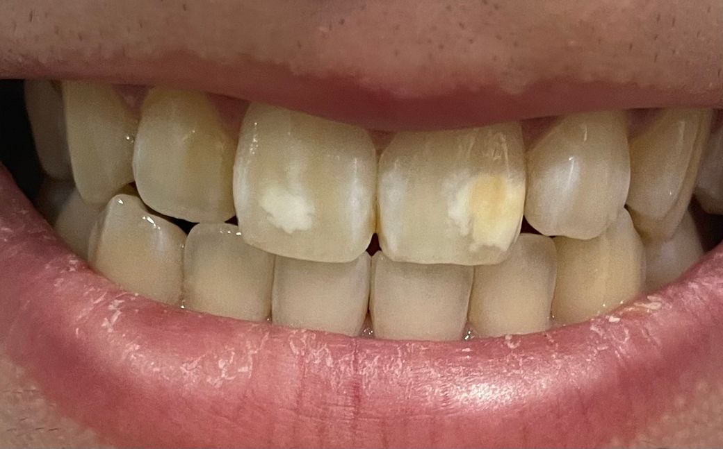 앞니에 이런식으로 어릴적부터 변색이 있어서