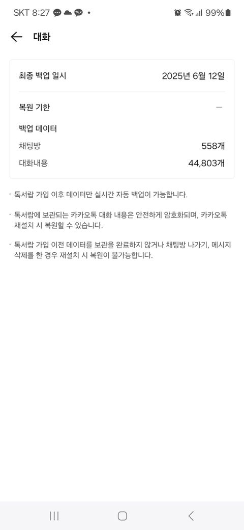톡서랍기능은 모든 대화가 저장되지 않아요