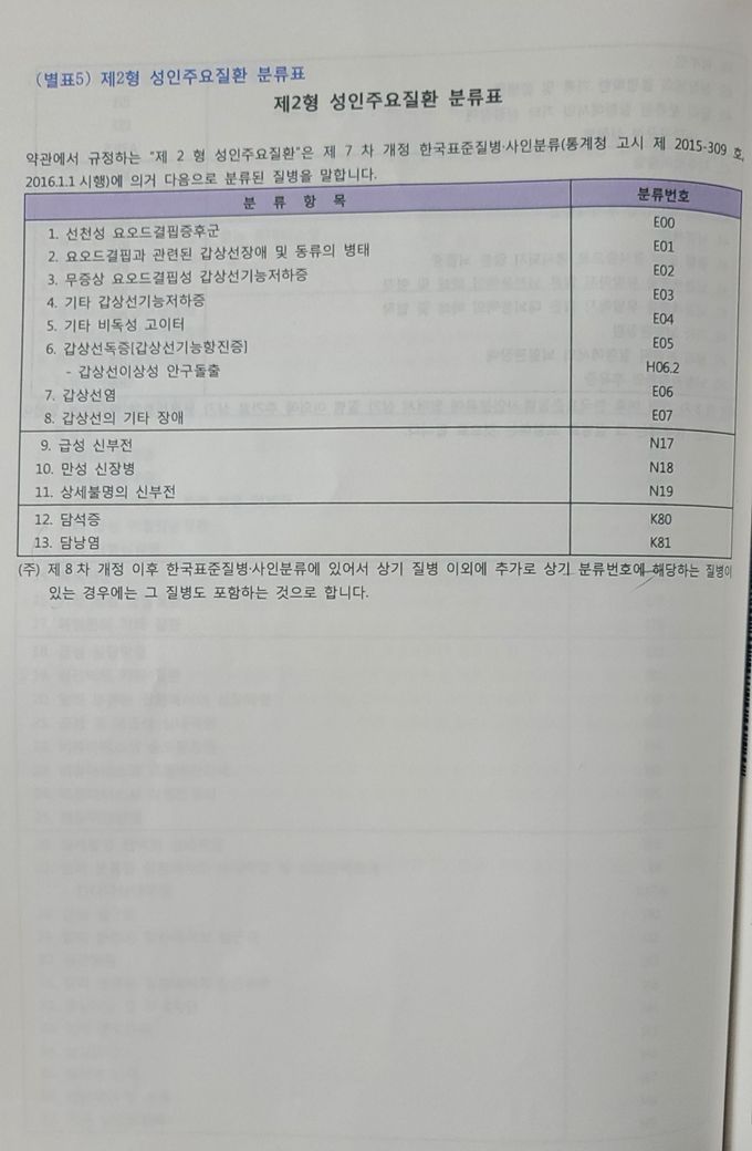 성인주요 질환 분류표라는 것 자체가 해당 보험사의 해당 보험상품에서 지정한 것으로