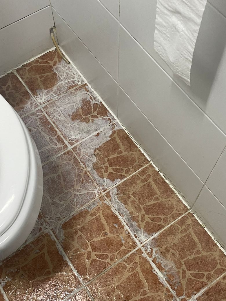 원룸에 살고있습니다 변기옆에 저 선? 에서 물이 나오는 것 같은데 저게 대체 뭘까요? 그리고 점점 화장실 바닥에 흰색 뭔가가 생깁니다 닦아도 안지워져요 뭘까요 저게....???