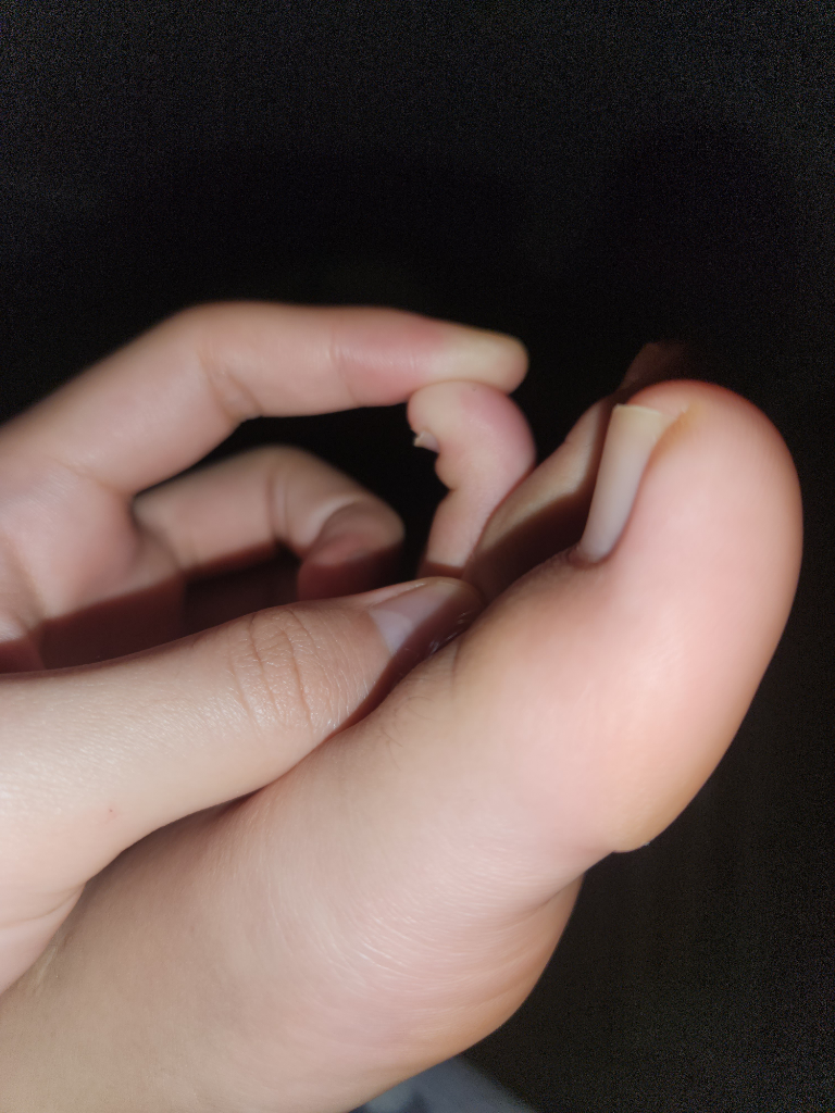발톱은 잘 자라고 있으나 인대가 말썽이에요. 당시에 병원에서 엑스레이 상으로는 문제가 없다고 하셨으나 4달 반이 지난 지금도 발가락으로 온 몸을 지탱하는 스트레칭 자세(가령 플랭크)를 하면 약간의 통증과 땡기는 느낌이 있습니다. 특히 첨부한 사진처럼 발가락을 몸쪽으로 잡아댕겼을때 통증이 가장 확실하게 와요. 지금은 그렇지 않지만 한 달 전까지는 발가락을 세게 구부렸을때에도 이런 통증과 땡김이 있었어요
