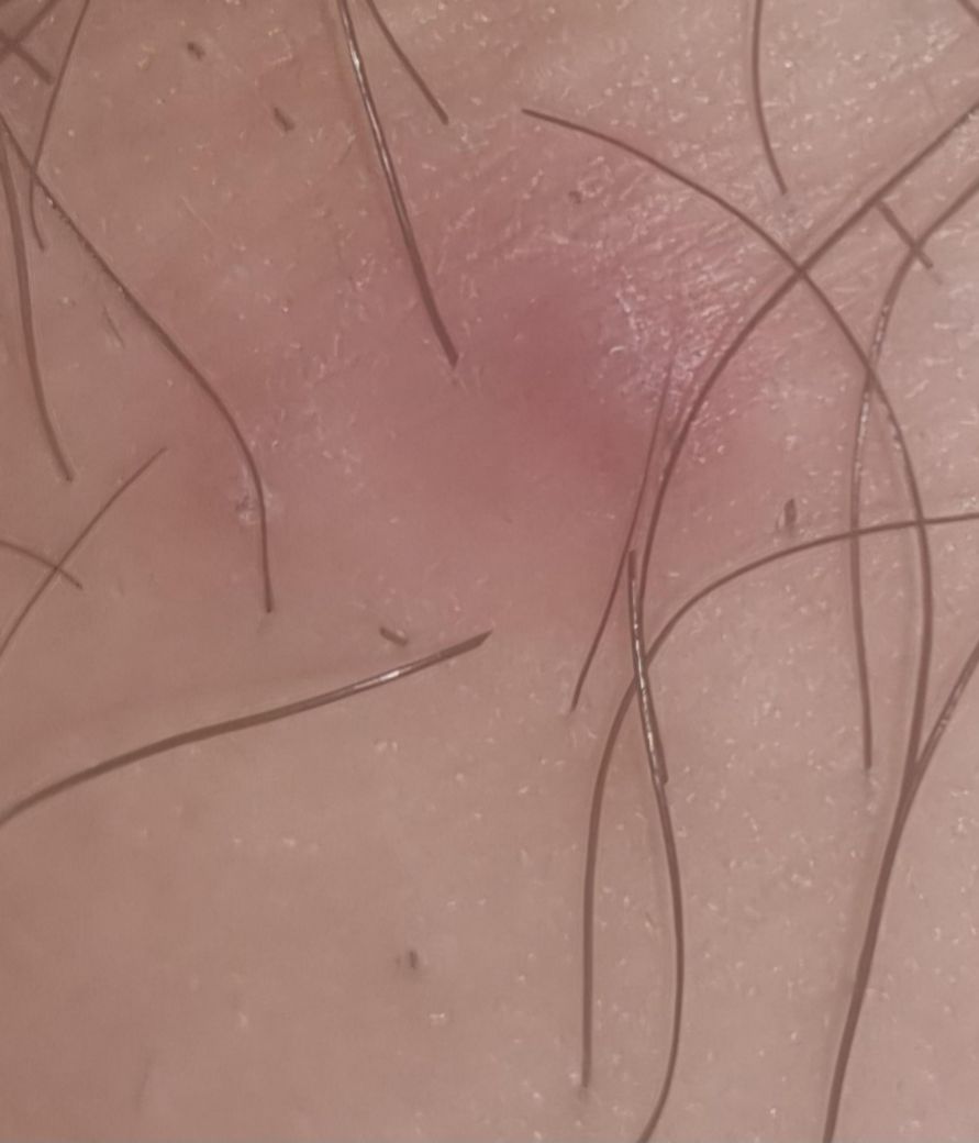 사진의 소견만 놓고 정확한 감별 진단을 내리는 것은 가능하지 않습니다만 단순 뾰루지나 모낭염 등을 의심해볼 수 있는 소견으로 보입니다. 해당 소견을 통해서 성병 여부를 구체적으로 감별진단 내리는 것은 가능하지 않습니다. 우려스럽다면 관련된 검사를 통해서 파악해보는 것이 필요하겠습니다.