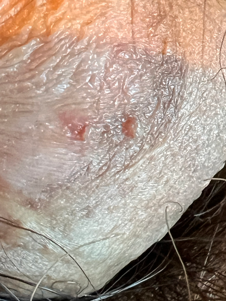 곤지름을 의심해 볼 수 있는 모양입니다.