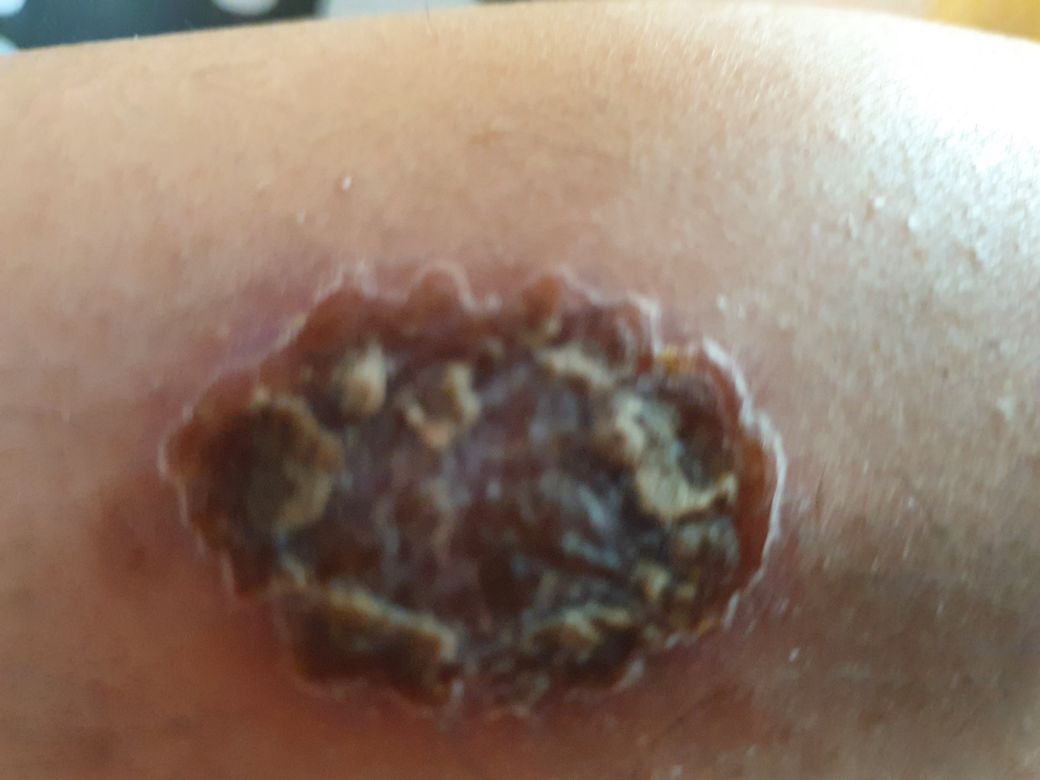 질문하신 내용에 대하여 아래와 같이 답변 드립니다.사진을 새롭게 올려 주셨네요. 모양으로 봐서는 동전 모양 습진(화폐상 습진)일 가능성이 높아 보입니다. 주로 피부가 건조해서 생기고, 겨울철에 흔히 유발 되지요. 생기는 원인은 아직 잘 모른답니다. 다만 건조함과 관련이 높다고만 알려져 있지요. 일단 보습을 잘 해주시는 것이 도움이 되고, 습진이 생겼을 때는 바르는 스테로이드 연고를 사용하는 것이 필요합니다. 가렵다면 먹는 항히스타민제를 드시면서 가급적 긁지 않도록 하는 것이 필요하지요. 재발을 자주 하는 질병이라서 꾸준히 피부과에서 진료를 받아보시는 것이 필요하다 보입니다.