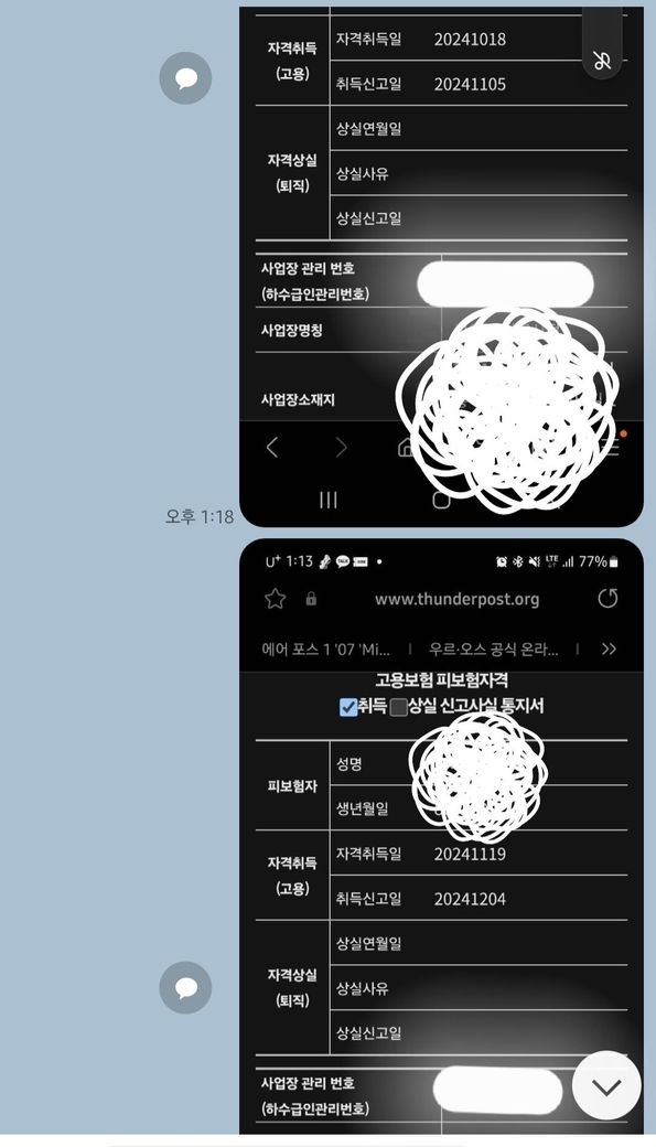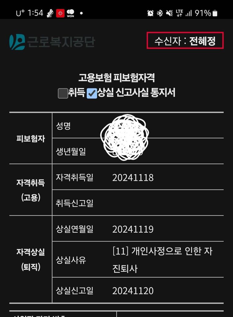 그 사이 11.19 다른 곳에서 편의점 일하는 시간을 피해 8시간 하루 알바를 했는데 4대보험이 들어가서 11.19일 이중취득이 되면서
