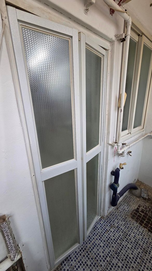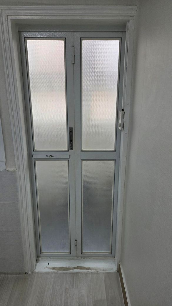 주방 베란다 중문입니다. 세탁기를 넣을 사이즈가 안나와서 문짝을때고 분해조립을 하던가 문틀을 전체적으로 교체하려고합니다.