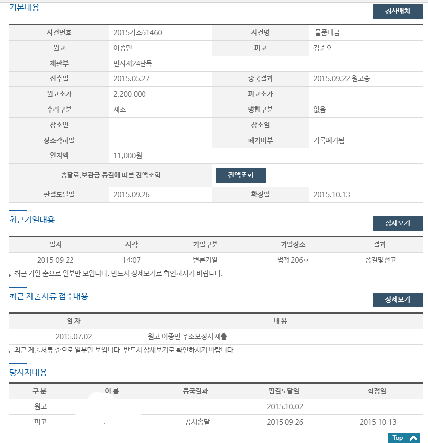 질문하신 내용에 대하여 아래와 같이 답변 드립니다.판결이 공시 송달로 송달까지 완료 된 것으로 보입니다. 해당 사항에 대해서 입장이 어느쪽이신지, 구체적으로 아직 해당 사안에 대한 집행이 가능하며 소멸시효는 10년으로 확정일로 부터 아직 해당 소멸시효기간이 지나지 않은 점에서 구체적으로 집행이 가능한 사안입니다.