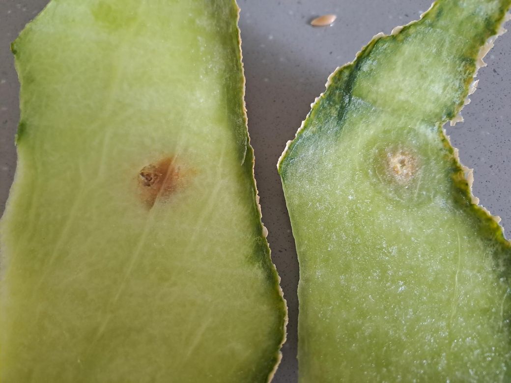 사진 보여주신 멜론 상태를 보면 특정 부위에 갈변과 과육 변색이 생겼고 그 부분에서 쓴맛이 난다고 하신거죠?