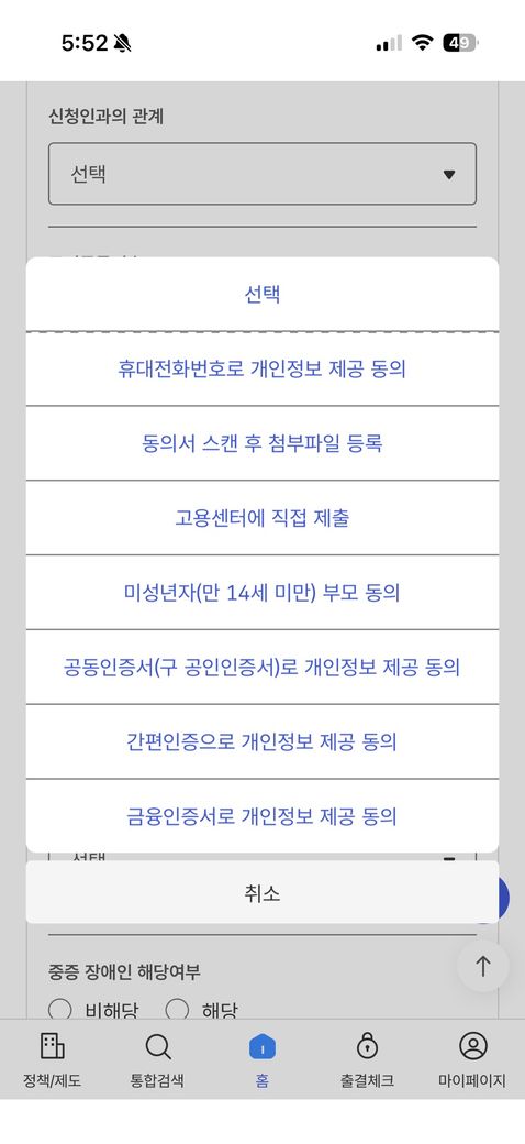 저기서 전부 하는 건 아니고, 해당되는 것만 하나만 선택하여 인증 후 신청하시면 되는 것으로 알고 있습니다. 어려움이 있다면, 고용센터에 문의하여 발급 도움을 받아보시기 바랍니다.