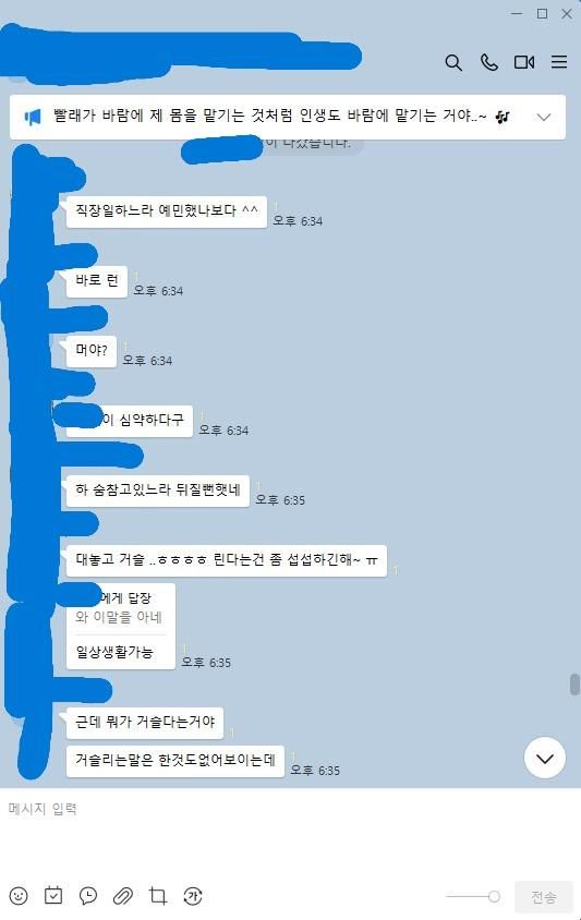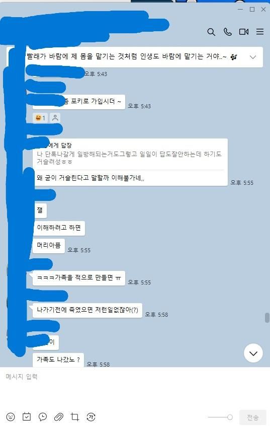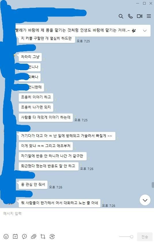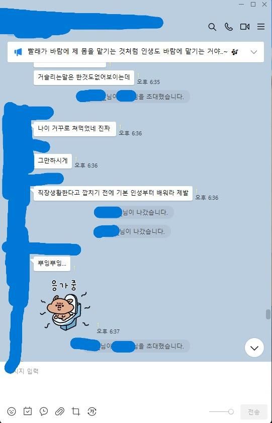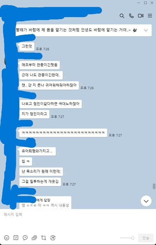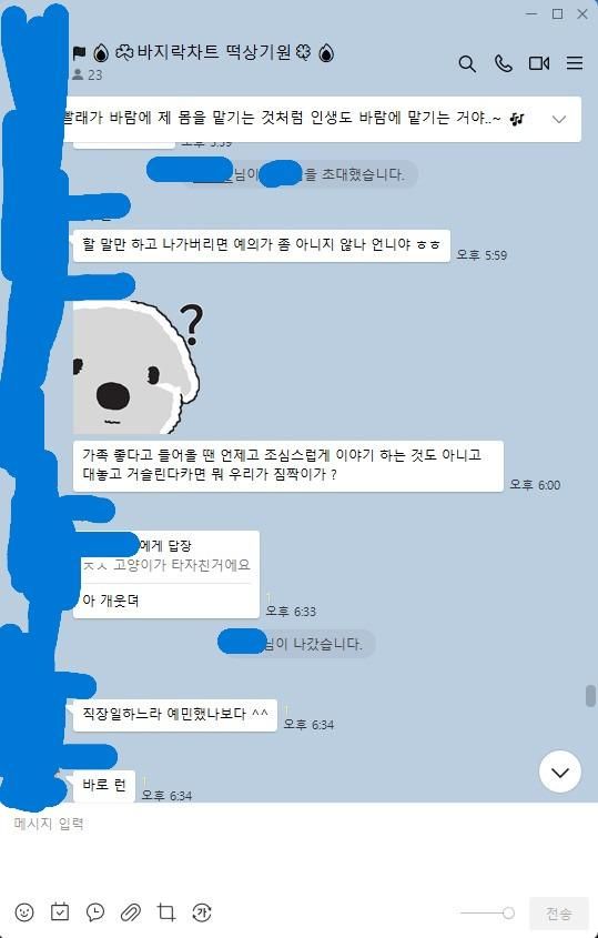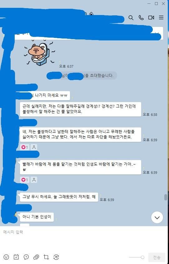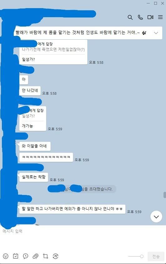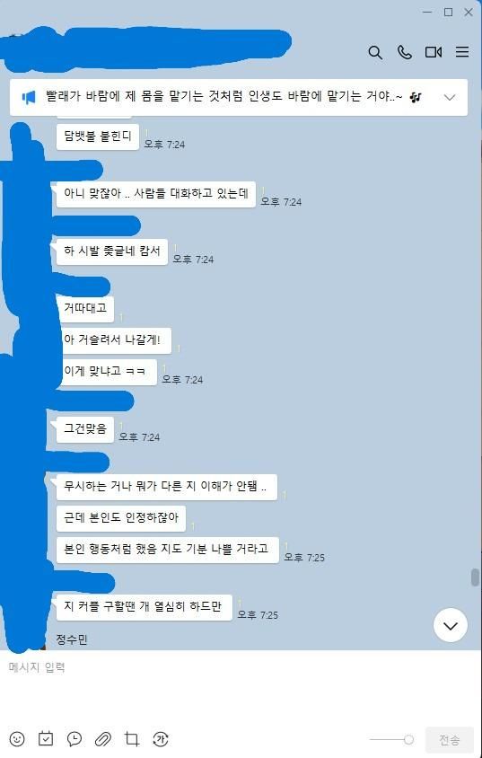 이 노란색은 욕먹은 지인이 나간 이후 부터 파란색으로 가린것들은 욕먹은 지인에 대한 언급이 있다고 생각해서 가렸습니다.