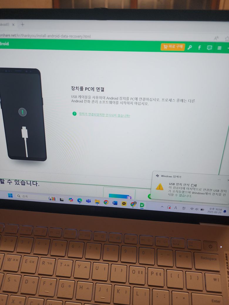 Tenorshare 프로그램 사용해서 복구해 보려고 하는데 계속 pc에서 장치와 연결이 되지 않는다고 하는데 어떻게 해야 되나요?