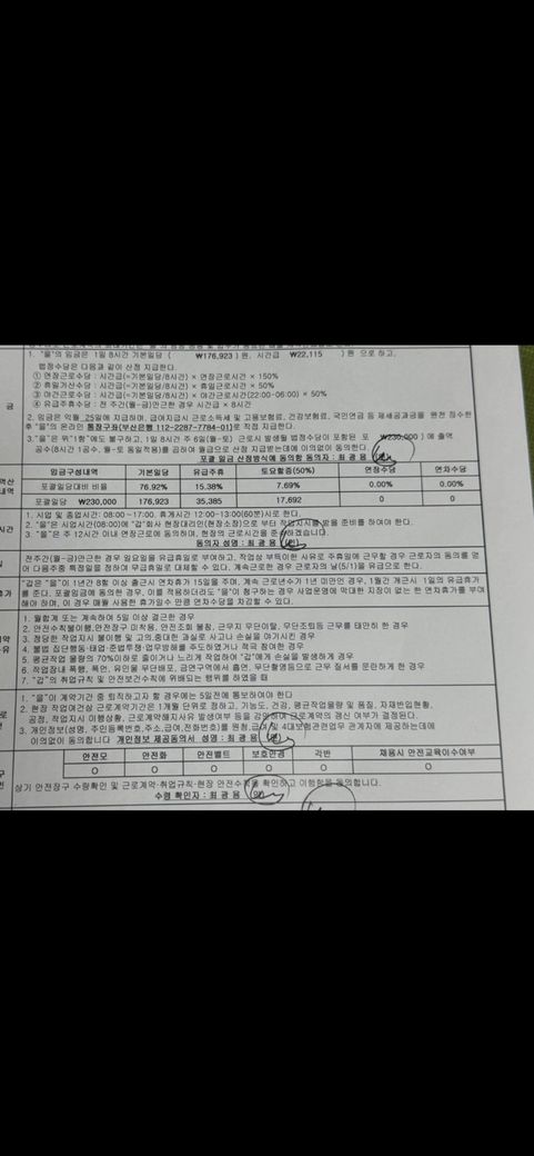 연차수당 근로 계약서 봐주시길 바랍니다