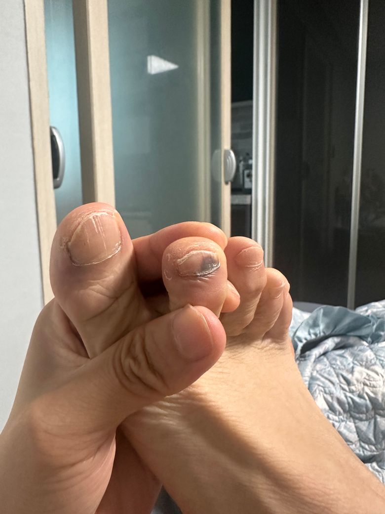 이틀 전에 갑자기 없던 검은색 멍같은게 들어있네요.. 아프진 않고 부딪힌 기억도 딱히없는데..