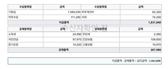 첫번째 사진은 만근한 11월 급여명세서이며, 두번째 사진은 퇴사한 달인 12월 급여명세서입니다.
