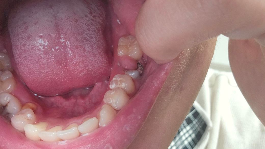 충치가 심하게 생겨서 치아에 구멍이 뚫렸고, 그 구멍이 커서 치아 속 신경이라는 치수 조직까지 노출된겁니다. 그 결과 치수가 급격히 자극되어 pulp polyp(치수 용종)이 생긴겁니다. 치과가서 바로 처치 받으세요