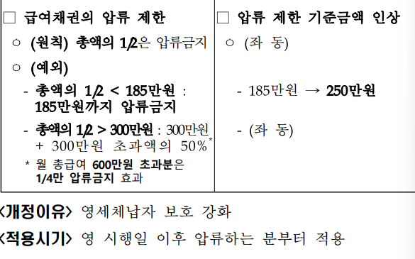 급여 채권에 대항 압류제한 규정이 개정되었습니다.