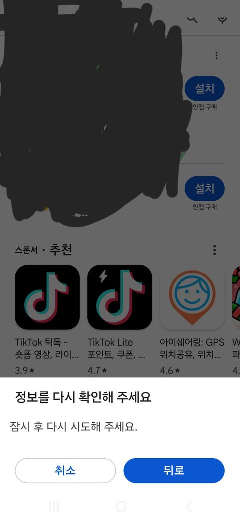 플레이스토어 성인인증이 되지않습니다 몇번을 시도를해도 사진상에서 처럼만 되고 그 이후로는 되지 않습니다